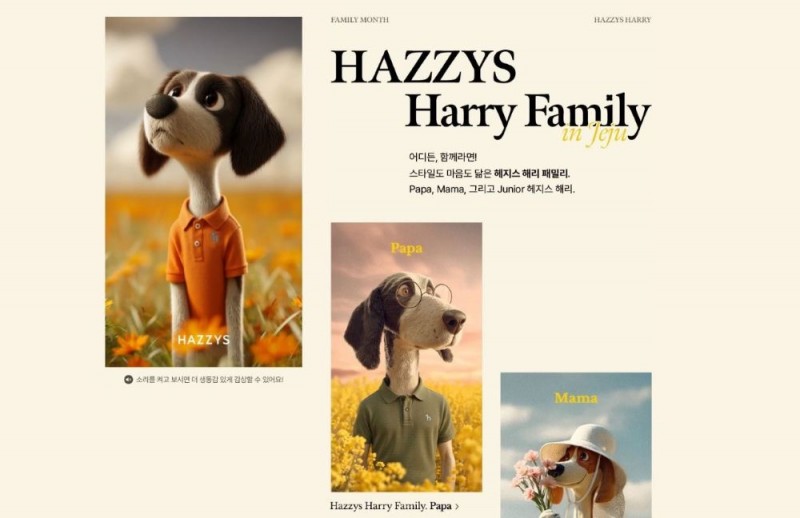 해리(HARRY)’헤지스를 상징하는 잉글리시 포인터 견종을 기반으로 2022년 말 탄생한 의인화 캐릭터다. 단순한 마스코트 역할을 넘어 영국식 클래식 라이프스타일과 위트 있는 감성을 동시에 담은 브랜드 세계관의 중심축으로 기획됐다.