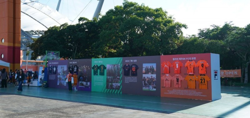 유니폼 제작을 기념해 지난달 14일에는 ‘휠라’와 제주SK의 지난 4년간의 시즌 서드 유니폼 히스토리를 만나볼 수 있는 전시 부스를 운영했다. 현장에서 리사이클링 플라스틱으로 제작한 돌고래 키링과 선수들의 사인이 담긴 유니폼을 증정하는 등 다양한 팬 참여 이벤트를 진행하며 큰 호응을 얻었다.