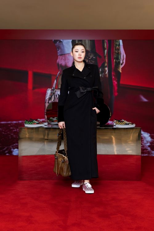 리정은 패디드 숄더, 벨벳 디테일, 파유 보우 클로저가 돋보이는 블랙 드레이프 코트로 강렬한 룩을 선보였다. 발렌티노 가라바니와 반스의 협업으로 선보이는 스니커즈에 메종의 새로운 액세서리인 발렌티노 가라바니 판테아 백을 매치해 개성을 드러냈다.