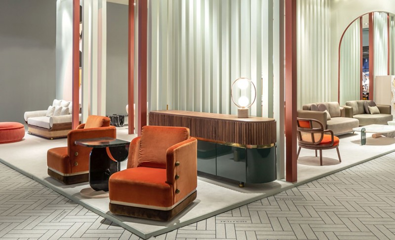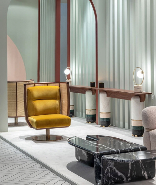 포르투갈 브랜드 ‘도크(Dooq)’는 크고 작음, 부드러움과 단단한 등 다양한 양면성에서 영감을 받아 이를 통해 대비되는 소재를 결합한 디자인을 선보이는 가구 브랜드로 화려하고 우아한 공간 연출이 가능한 것이 특징이다. 이탈리아 브랜드 ‘타치니(Tacchini)’는 20여명의 디자이너가 각기 다른 컬렉션의 가구들을 선보여 다양한 제품을 만나 볼 수 있으며 고급 자재와 첨단 기술을 사용해 제작하는 브랜드로 마치 미술 작품을 연상케 한다.