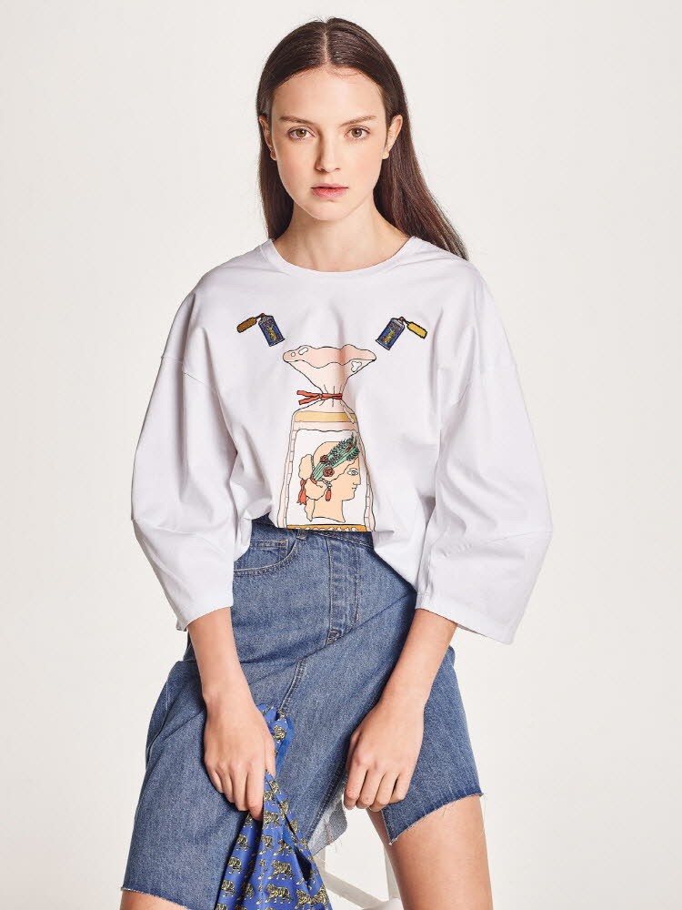‘쥬시쥬디 X 티아고 마후엘로스’ 컬렉션은 작가의 재밌고 기발한 상상력이 담긴 4가지 대표작품에 ‘쥬시쥬디’만의 유니크한 감성을 더한 것이 특징이다. 특히 밀의 성장과 수확을 관장하는 대지의 여신 ‘데메테르(Demeter)’를 빵 패키지 디자인에 새기거나 ‘제우스(Zeus)’가 타이탄을 쫓아내고 올림푸스 최고의 신이 되는 장면을 스프레이에 표현한 작가의 키치한 감성이 제품에 그대로 묻어났다. 티셔츠, 니트, 가방 등으로 구성되어 있으며 가격대는 6만원대부터 12만원대다.