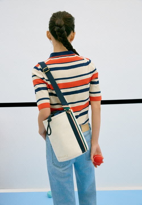 가방 핸들의 3색 컬러 웨빙 디테일이 고급스럽고 신선한 느낌을 주는 써티 스몰 토트백을 대표 상품으로 내세웠다. 오염에 강하고 내구성 높은 PLC 캔버스 소재를 사용했고 가방의 원판과 핸들에 3색 테잎으로 디자인했다.