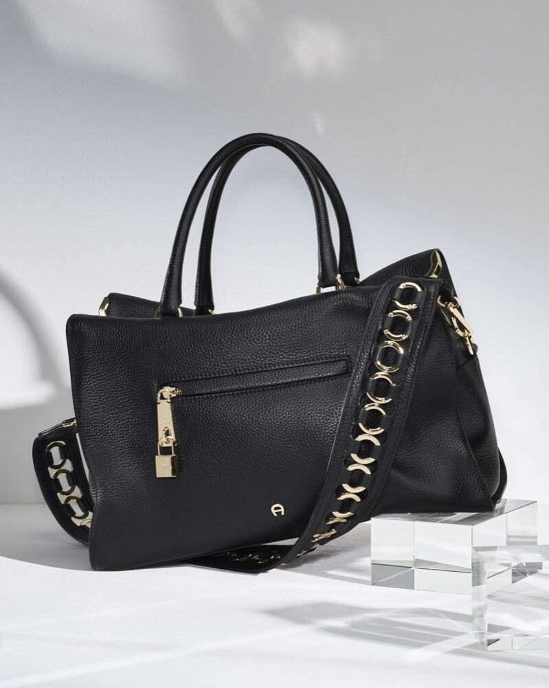 클래식한 디자인의 토트백 카이아는 천연 소가죽을 사용해 부드럽고 넓은 수납공간을 자랑한다. ‘아이그너’의 상징적인 자물쇠와 열쇠 장식이 달려 있어 앞면 포켓 잠금 기능을 제공하며 별도의 스트랩 추가 시 트렌디하고 개성 있는 스타일 연출이 가능하다.