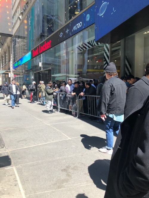 특히 콜라보 컬렉션 런칭 일을 맞아 뉴욕 일대에는 긴 줄이 늘어서는 진풍경이 펼쳐져 더욱 화제를 모았다. 지난 4일과 5일(현지 시간) 미국 뉴욕 브로드웨이 40번과 42번가 일대는 콜라보 슈즈를 구매하기 위해 일찌감치 줄을 선 현지 팬들로 문전성시를 이루기도 했다.
