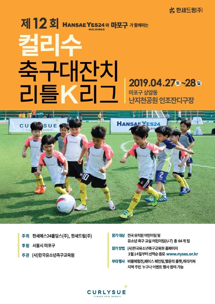 ‘컬리수 축구대잔치 리틀K리그’는 국내에서 유일하게 무료로 진행되는 7세 이하 유소년 축구대회다. 한세예스24홀딩스와 한세드림이 주최하고 사단법인 한국 유소년 축구 교육원이 주관하는 이번 행사는 4월 27일~28일 양일간 마포구 상암동 난지천공원 인조잔디구장에서 열린다.