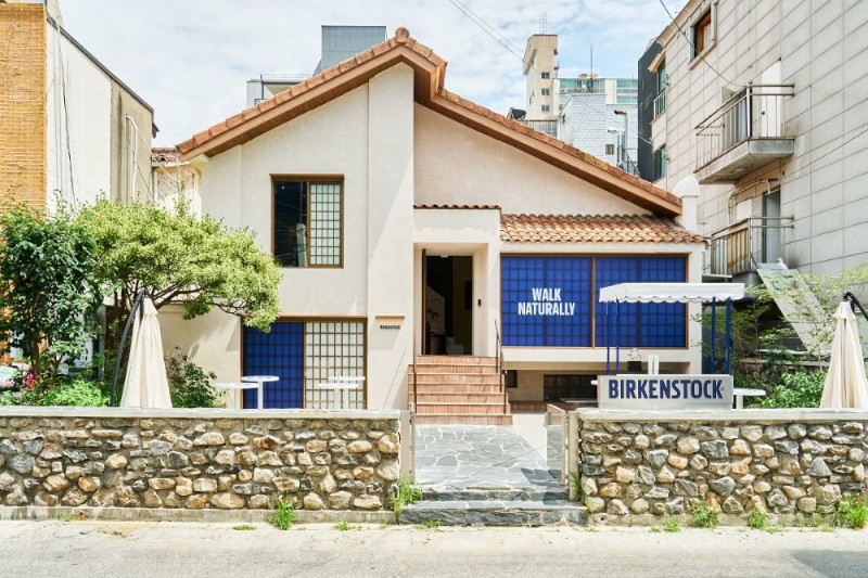 버켄스탁도산 플래그십 스토어는 브랜드의 상징적인 풋베드를 중심으로 한 공간 구성과 한국 전통 건축양식에서 영감을 받은 디자인이 특징이다.
