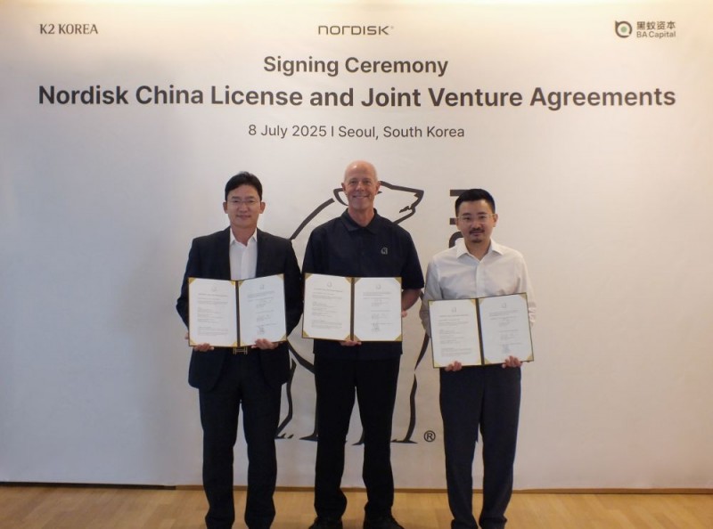이번 협약은 ‘노르디스크’의 중국 진출을 위한 라이선스 계약 체결과 함께 전략적 파트너십을 기반으로 한 합작법인 설립을 위한 공식 절차다. 이날 행사에는 노르디스크 본사 CEO 에릭 몰러, 케이투코리아그룹 정영훈 회장, BA Capital 데이비드 허, 그리고 주한 덴마크 부대사 필립 알렉산더 할크비스트가 참석했다.