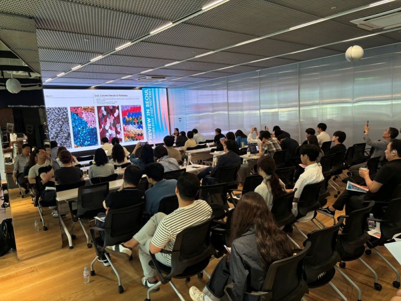 워크숍은 △PIS 2025 전시회 운영 방향(섬산련)을 시작으로 △2026~27 F/W 시즌 글로벌 소재 트렌드와 이를 반영한 전시 콘셉트 소개(PFIN)가 이어졌다. 트렌드 세션에서는 ‘LOOP’을 전시 콘셉트로 삼아 ‘Time’, ‘Act’, ‘Circle’, ‘Joy’ 네 가지 테마를 중심으로 소재 흐름과 컬러 전략을 제시해 참가업체의 큰 관심을 끌었다.