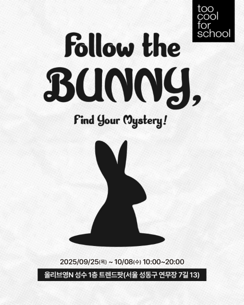 ‘투쿨포스쿨’ 팝업스토어 ‘Follow the Bunny, Find Your Mystery’는 오는 9월 25일부터 10월 8일까지 트렌드팟 바이 올리브영 성수에서 단독 운영된다.