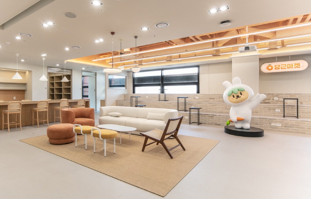 새로운 사옥은 하이퍼로컬 서비스를 지향하는 당근마켓의 아이덴티티와 비전을 담아 설계했다. 우리 동네를 테마로 사무실 곳곳에 친근하고 따뜻한 동네 느낌이 들도록 했다. 또 회의실 및 휴게 공간, 각 업무 룸으로 이어지는 복도에는 은행나무길 마을회관, 둘레길 모퉁이집, 오솔길 사진관 등 정감 있는 이름들을 부여했다.