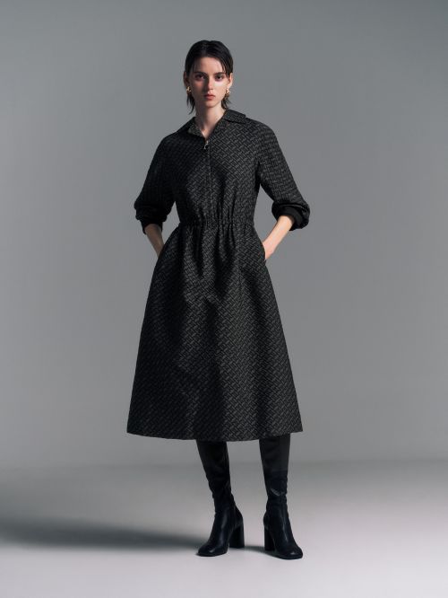 여성 라인에서는 울 자카드 원단에 DD 패턴을 입히고 엠보 처리로 입체감을 살린 원피스가 대표적이다. 허리 밴드 디테일로 활동성을 높이면서도 우아한 실루엣을 완성했다. 동일한 소재로 제작한 리버시블 케이프(망토) 니트는 간절기부터 한겨울까지 다양한 레이어드 스타일을 연출할 수 있다. 또한 가을 필수템인 바람막이 점퍼에도 자카드 원단과 허리 스트링을 더해 세련된 라인을 강조했으며 DD 로고가 전체에 반복된 반소매 니트도 만나볼 수 있다.