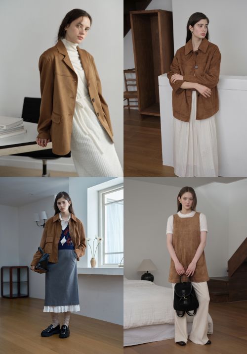 이번 시즌 쥬시쥬디‘URBAN HARMONY’를 주제로 클래식한 실루엣에 도회적인 감각을 더한 스타일링을 제안한다. 특히 빈티지한 무드와 고급스러움을 동시에 지닌 스웨이드를 메인 소재로 선보인다. 가벼우면서 포근한 착용감과 깊이 있는 색감으로 간절기부터 초겨울까지 폭넓게 스타일링하기 좋다.