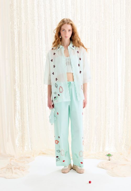 주요 아이템은 ‘리본 프린트 새틴 파자마’, ‘레이스 슬립 드레스', ‘코튼 포플린&오간자 아이템’, ‘플라워 실크 트윌 프린트 블라우스’ 등으로 수공예적 디테일과 섬세한 장식이 돋보인다.