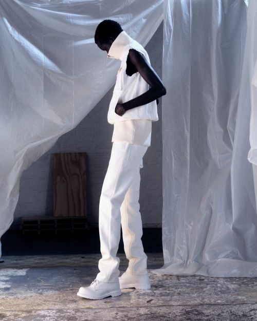 이번 시즌에는 두 가지 하이브리드 스타일이 강렬한 화이트 컬러로 돌아온다. 이는 ‘MM6’의 핵심 미학과 2025년 봄여름 브랜드 쇼에 등장한 페인트로 물든 닥터마틴슈즈에서 영감을 받은 것이다.