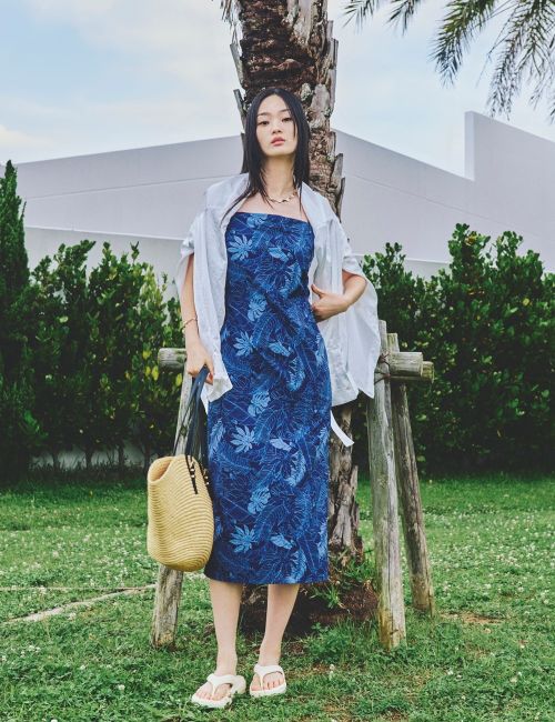 멀리 이동하지 않고 도심 속 호캉스를 즐기거나 사람이 붐비지 않는 리조트에서 여유있는 시간을 즐기고 싶다면 편안하면서도 스타일리시한 아이템으로 바캉스룩을 완성할 수 있다. ‘여성용 트로픽 드레스’는 이국적인 매력을 자아내는 트로피컬 패턴을 전면부에 적용한 아이템으로 여름철 대표 소재 중 하나인 시어서커를 적용해 시원하면서도 스타일리하게 착용 가능하다. 어깨끈 조절이 가능해 각자의 체적에 맞게 연출할 수 있다.