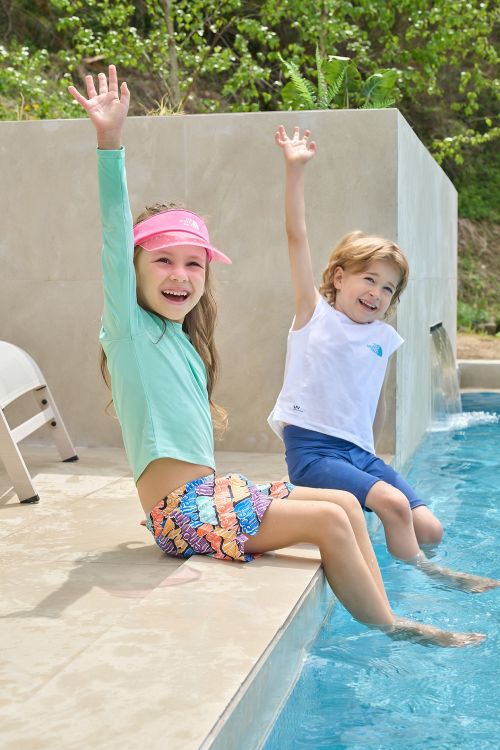 바캉스에 빠질 수 없는 물놀이를 계획하고 있다면 워터파크, 워터 페스티벌 등에서도 전천후로 활용할 수 있는 실용성 있는 아이템을 추천한다. 시원한 민트 컬러의 상의와 ‘노스페이스’ 레터링 그래픽으로 포인트를 더한 쇼츠 구성의 ‘키즈 클래스 브이 패스파인더 세트’는 발수 가공 처리된 리사이클링 폴리 스판 소재를 적용했고 자외선 차단 기능이 뛰어나, 활동적인 우리 아이들이 편안하고 안전하게 착용하기 좋은 아이템이다.