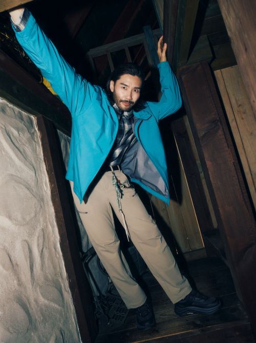 또 다른 화보컷에서는 ‘데일리 후디 고어텍스 WSP 자켓’을 빈티지 무드의 체크 셔츠와 레이어드해 아메카지 스타일을 에너제틱하게 연출했다.
