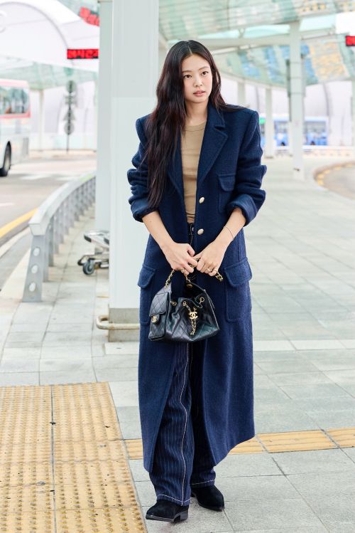 제니는 ‘샤넬’의 2025/26 가을-겨울 프리 컬렉션 룩의 롱 코트와 2025/26 크루즈 컬렉션의 샤넬 25 미니 핸드백을 착용해 세련미 넘치는 공항패션을 완성했다.
