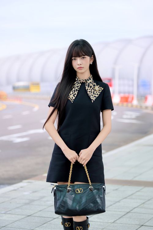 블랙 드레스로 닮은 듯 각자의 개성을 담아 서로 다른 매력의 아웃핏을 선보인 리즈와 레이와 리즈는 소매와 밑단의 러플 장식을 더한 ‘발렌티노’ 2025 가을 컬렉션 블랙 원피스 드레스와 리본 장식의 발렌티노 가라바니 보와우 슬링백을 매치하며 로맨틱한 미니멀리즘을 완성했다. 레이 역시 2025 가을 컬렉션 속, 네크라인에 레오파드 스카프 카라 디테일 드레스를 선택, 브이로고 시그니처가 장식된 롱부츠를 매치하며 시크한 매력을 뽐냈다.