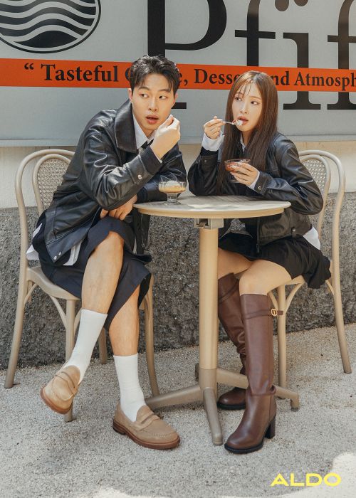 레트로 스니커즈 화보에선 장난스럽고 편안한 남매만의 케미스트리를 보여주었다면 이번 부츠샵 화보에서는 블랙 레더 재킷과 셔츠 레이어드 스타일링으로 세련된 무드를 연출했다. 특히 박지연은 ‘알도’의 롱부츠를 포인트 아이템으로 활용해 계절감을 살리면서 시크한 매력을 한층 강조했다.